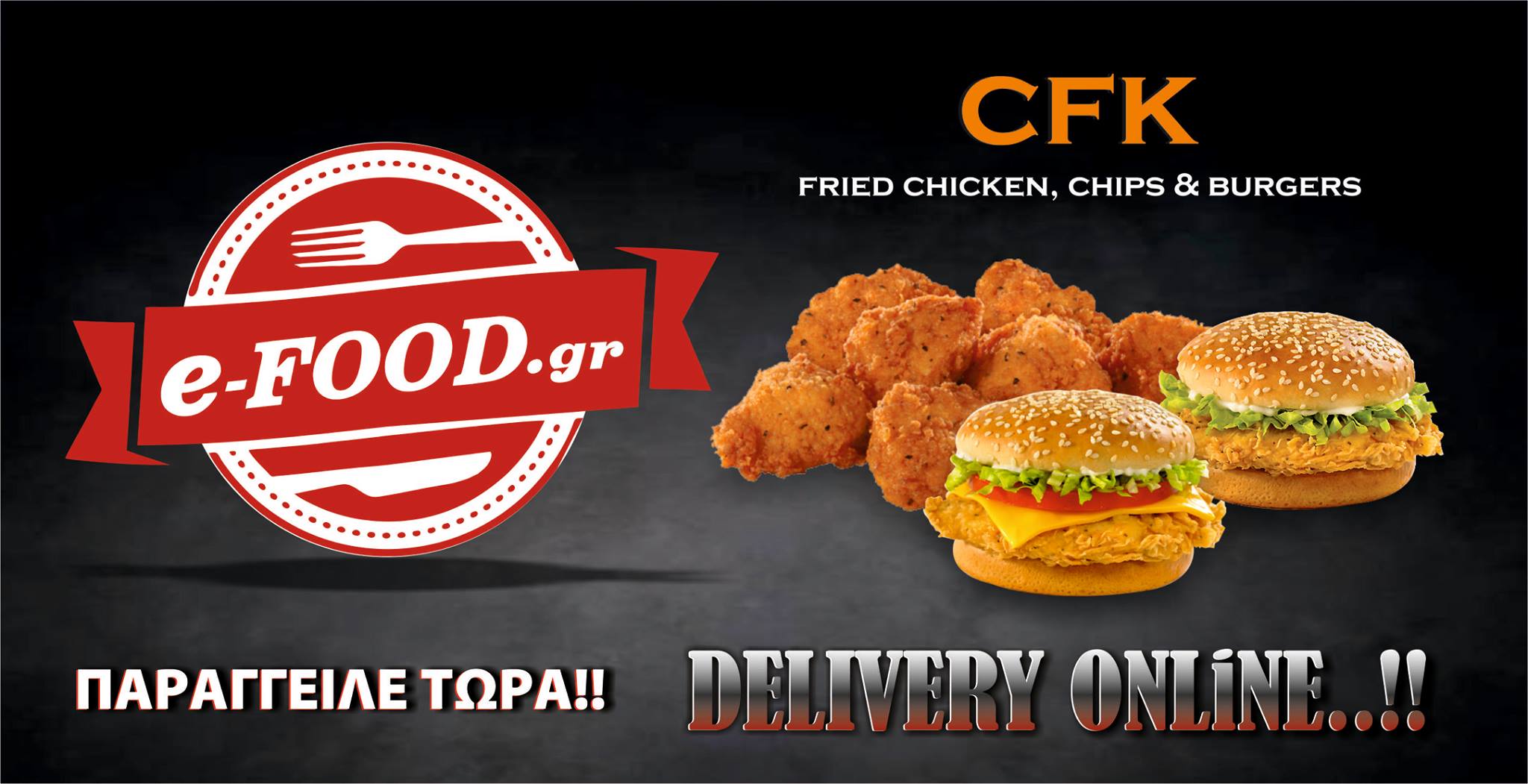 Είτε επιλέξεις ένα crispy chicken menu, είτε ένα λαχταριστό burger, είτε συνοδευτικά που απογειώνουν το γεύμα σου, στο CFK κάθε μπουκιά είναι εμπειρία.